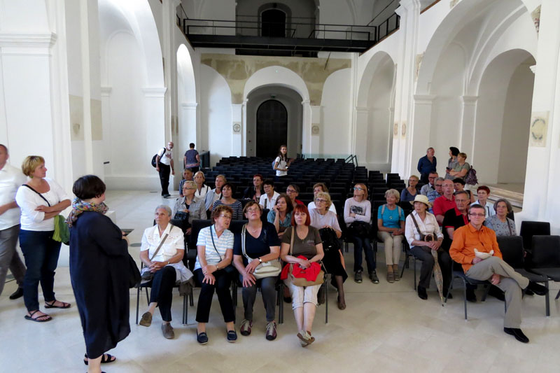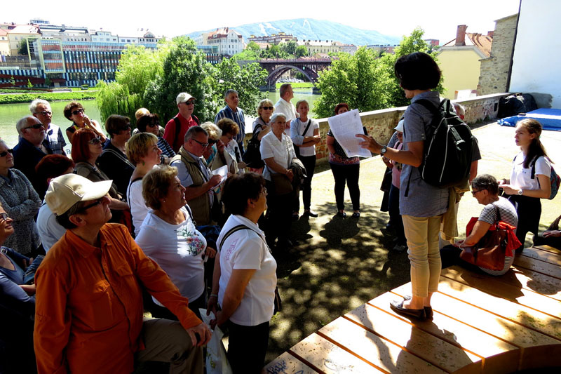 On Saturday, 10 June 2017, we set off on the fourth Vurnik Trail, which each year leads us to the places where architect Ivan Vurnik and painter Helena Kottler Vurnik left their mark. This year, we visited the Vurnik’s Workers’ Colony in Maribor and other interesting architectural works from various periods to contemporaneity. Our first stop was Vurnik’s Workers’ Colony, under guidance by Dr. Marjeta Ciglenečki, including the interiors of two housing units. We continued our trip to the city centre where, under guidance by architects Assist. Prof. Robert Potokar and Nives Čorak, we went to see the railway station (architect Milan Černigoj, 1949‒55), the 14th century synagogue, mansion Naskov dvorec/Vetrinjski dvor (ARREA, architects Maruša Zorec and Matjaž Bolčina, 2009), a monument to NOB (sculptor Slavko Tihec, 1975), Hutter’s block of flats (architects Aleksander Dev and Jaroslav Černigoj, 1941), and the Lutkovno gledališče Maribor puppet theatre (ATELIERarhitekti, Jurij Kobe, 2010), guided by managing and artistic director Katarina Klančnik Kocutar. Vurnik Trail ended in the Church of Saint John Bosco (DANS arhitekti, 2015) where we were treated to a music performance (Renata Gračnar, soprano; Mitja Krajnc, tenor; Neja Skrbiš, piano; Živa Skrbiš, flute).