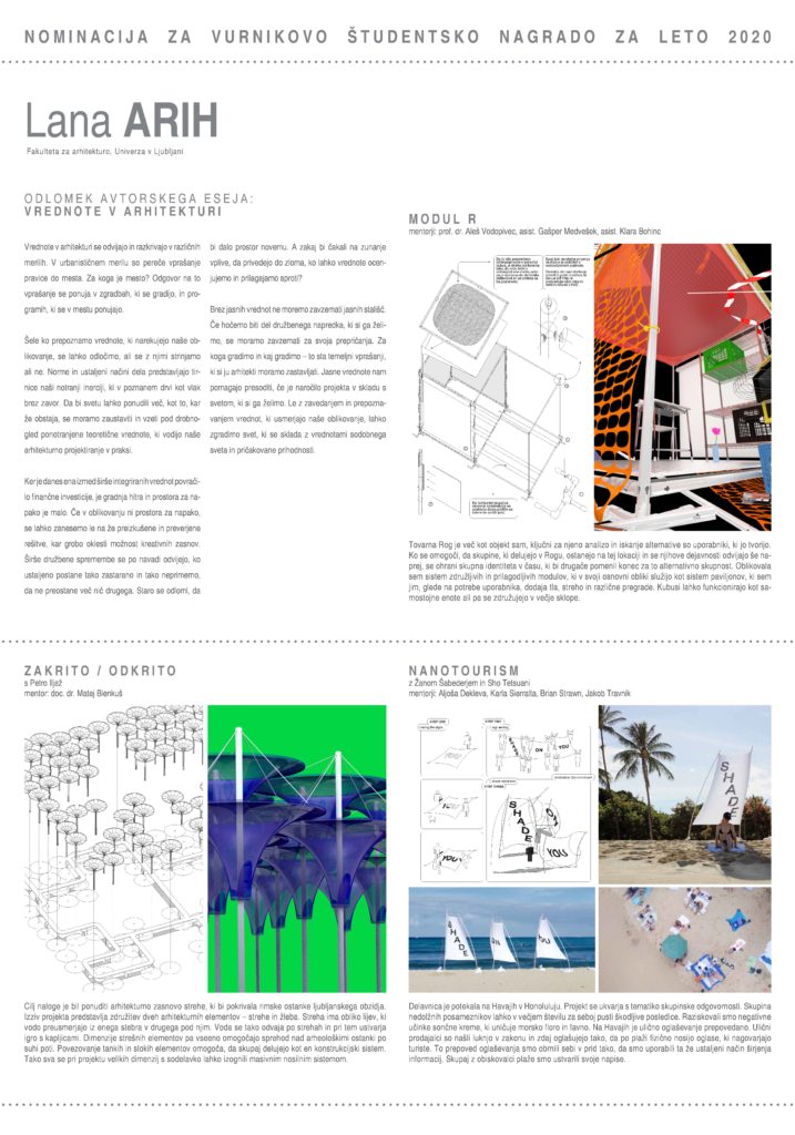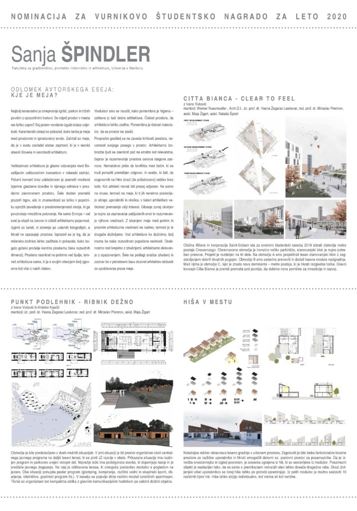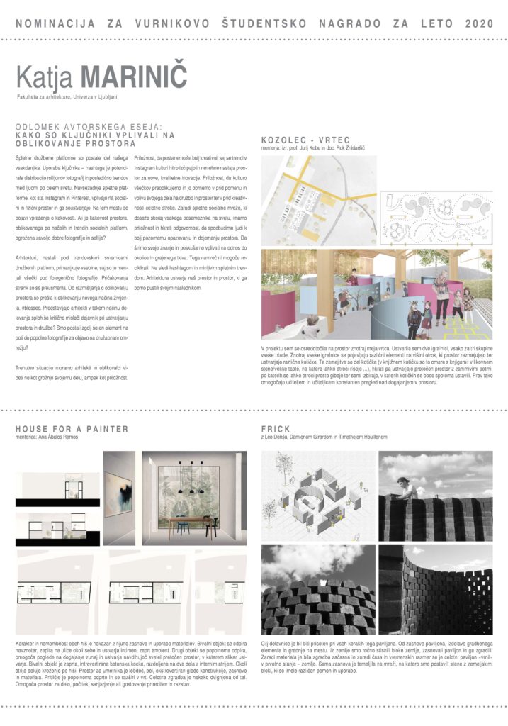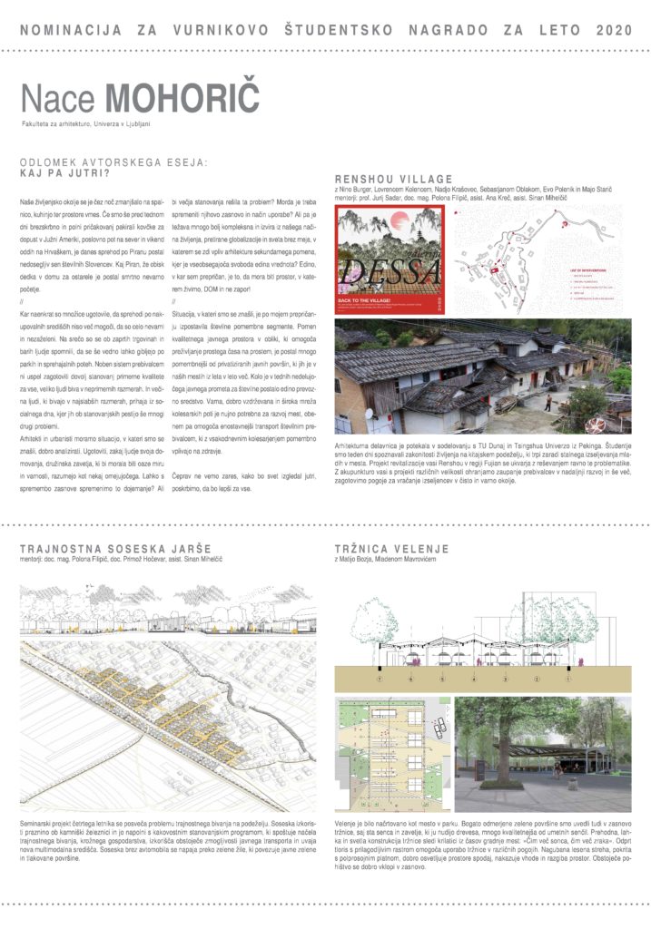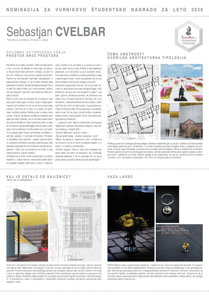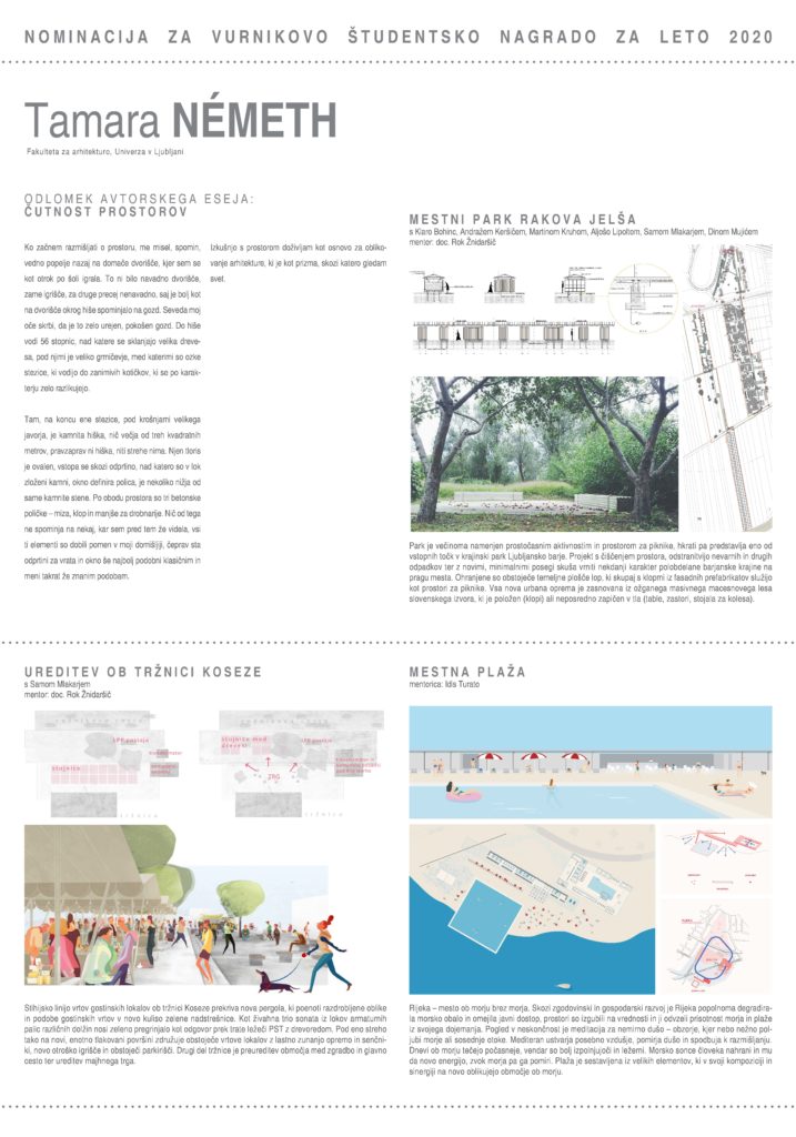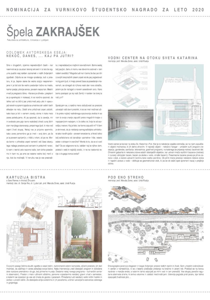 VURNIKOVA ŠTUDENTSKA NAGRADA ZA LETO 2020